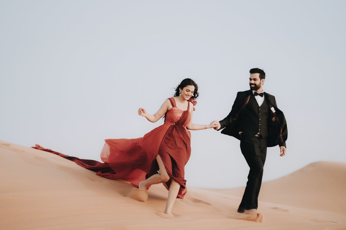 Dressed in bohemian elegance, they radiated a captivating charm that echoed the mystique of the desert itself. Their love became a kaleidoscope of emotions, capturing stolen glances under the starlit sky and tender moments shared amidst the solitude of the desert’s embrace. Their pre-wedding shoot unfolded like a captivating tale, each photograph capturing their adventurous spirits and unwavering bond. Against the backdrop of dramatic sunsets and towering rock formations, they reveled in the majesty of the desert, celebrating their love’s resilience in the face of vastness. Kashish and Sonoo, a couple drawn together by destiny’s hand, found solace amidst the untamed beauty of America’s deserts. Their pre-wedding shoot became a testament to their shared passion for exploration and their unwavering commitment to one another. As they embarked on this desert odyssey, their love became a radiant beacon in the midst of the wilderness, forever etching their souls in the sands of time.